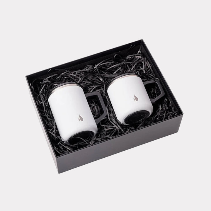 Enjoy your coffee in style with the Coffee Buddy Gift Set, featuring 12 oz and 16 oz insulated summit mugs. These lightweight mugs have durable handles, easy-to-clean curved interiors, and shatterproof Tritan lids for spill-free travel. Made from 18/8 stainless steel, they ensure fresh-tasting drinks every time.