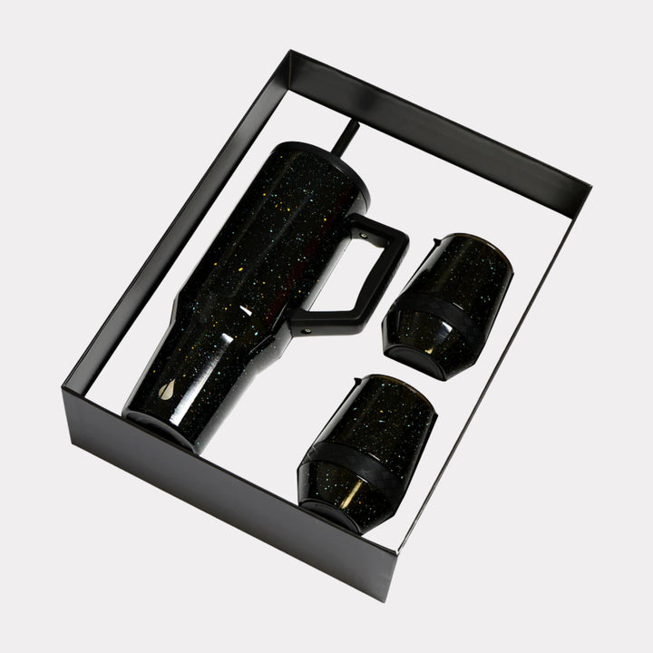 A special Drinkware Gift Set for those who prefer their sipping experience to be chill yet adventurous. This tailored set features a stylish 40oz Tumbler paired with two 10oz sleekly designed Wine Tumblers, allowing you to savor every moment with your loved ones whether in the house chillin’ or traveling on the go!