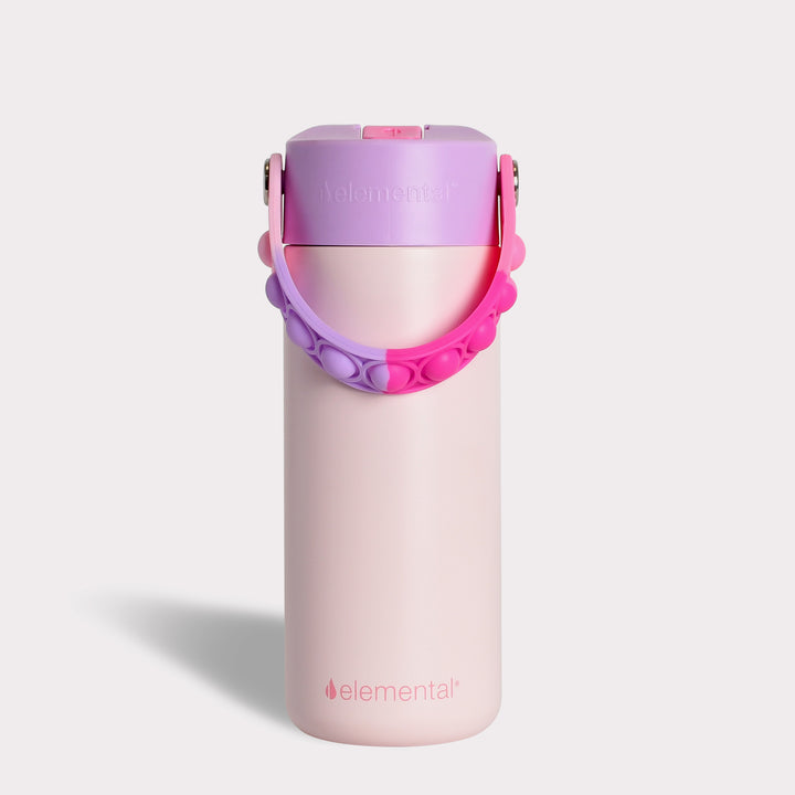 The Elemental Core 18 oz water bottle is the perfect solution for keeping your little one both hydrated and entertained. Designed with a fun pop fidget handle, it keeps kids engaged for hours while sipping away. The cheerful colors and simple, sleek design are sure to please, while the leakproof lid ensures no spills, even with the most active hands. Built to keep water cold for up to 24 hours, this bottle is just as reliable as it is fun. Trusted by parents and loved by kids!
