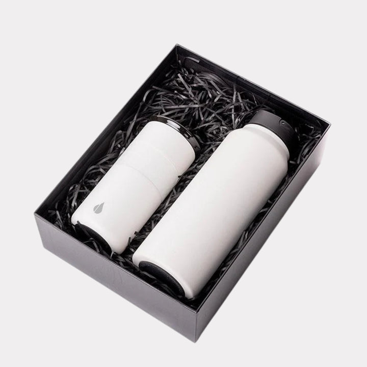 Pairing our two most popular drinkware items to create this one-of-a-kind gift set that’s perfect for on-the-go individuals. The 32 oz Sport Water Bottle with & 16 oz Artisan Tumbler with ceramic lid are both made of insulated stainless steel with double-wall construction, guaranteeing to keep your drinks hot or cold for hours. With an option of personalization, this makes a perfect anniversary, holiday, or birthday gift for your loved ones.