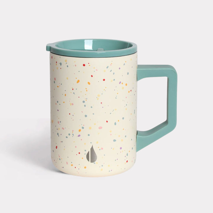 The mug is made from premium stainless steel with TrueBarrier™ copper insulation, a shatterproof Tritan lid, and a non-slip bottom for added durability.